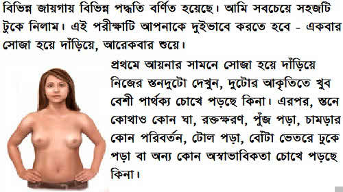 আয়নার সামনে কাধ সোজা করে দাঁড়ান, কোমরে হাত রাখুন ও আপনার স্তনের দিকে তাকান এবং লক্ষ করুন